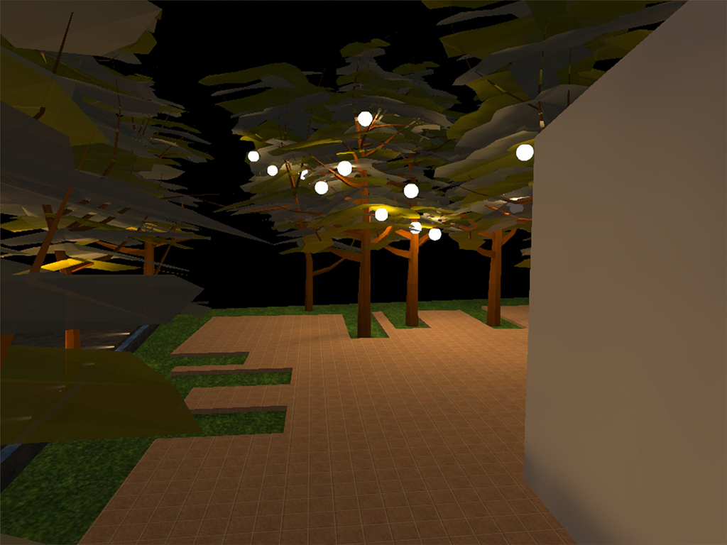 The client envisioned a landscape illumination that would compliment the rustic theme of the project as well as the inclined green roof Clubhouse/Office which was the unique feature. Keeping this in mind, we have designed the illumination for the sports area swimming pool, individual private garden area water body compound lighting. The pathway is highlighted by inground directional spots and the cascading water is highlighted by linear wall washer and up lighting tree foliage creates a majestic entrance experiences. The multipurpose court is given proper flood lighting as per sports standards. The lawn and the private garden are lit by moon lighting technique on existing trees. The inclined clubhouse green roof pitch is highlighted using LED spots. The official lounge area is uniformly lit by hanging lanterns on existing trees. The water body is lit using fibre optic and under water light.
