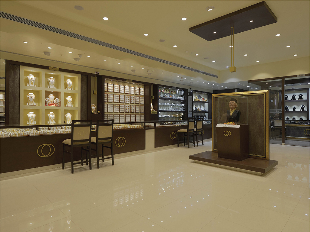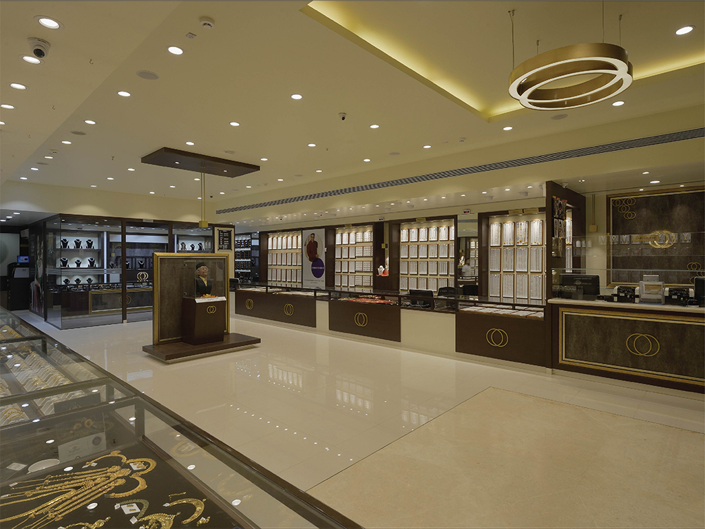 The client with their love for detailing expected a showroom in Kalyan catering to clientele from all walks of life. This showroom was to showcase every category of jewellery made by the brand. The idea was to incorporate the branding elements extensively in the design to give an enriched brand experience to a large number of customers walking in. This was done by the strategic use of the brand logo and a separate wall dedicated to the PNG brand story. To aid maximum visual accessibility of the jewellery displayed, the design incorporated an open layout and single walk in to enhance the experiential factor. Separate sections for the diamond and silver jewellery had customized using unique illumination and display. The overall design was such that it helped create a strong customer association and brand recall value.